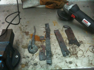 I seem to be starting new projects all the time, but they keep me interested I guess. This project is about making my own steel - Oroshigane - or Scrapahagane as some Westerners jokingly call it. In my case it is literally Scrapahagane as I am using scrap pre-industrial iron I have collected in the form of old nails, horseshoes, door hinges, broken tools etc. I pound that down to flat pieces, then cut smaller (15-20g) chips from them, and fill a graphite crucible. When the crucible is full, add some charcoal, (maybe some vegetable matter, as some claim the extra hydrogen faciltitates carbonization) and fire them in a forge for several hours. Ideally I will have created steel (iron with carbon in it), and then I will have to stack it and forge weld it to a single billet. I have done this once under Michael Bell's guidance, so it should work, as long as the scrap I have gathered is indeed the purer pre-industrial iron and not some modern iron or steel (which contains a lot of manganese, etc, etc). To be continued...